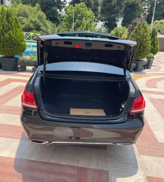 صندوق عقب بنز E250 با حجم ۵۴۰ لیتر، فضای کافی برای ۳ چمدان بزرگ و چند کیف کوچک را دارد. این خودرو برای سفرهای خانوادگی یا کاری بسیار مناسب و جادار است.