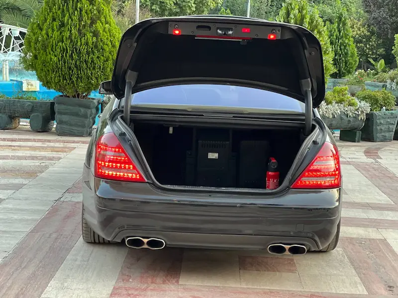 صندوق عقب بنز اس 500 حدود ۵۳۰ لیتر گنجایش دارد و فضای کافی برای ۳ چمدان بزرگ و چند کیف دستی فراهم میکند. این ویژگی، سفرهای کاری یا خانوادگی را کاملاً راحت و بدون دغدغه میکند.