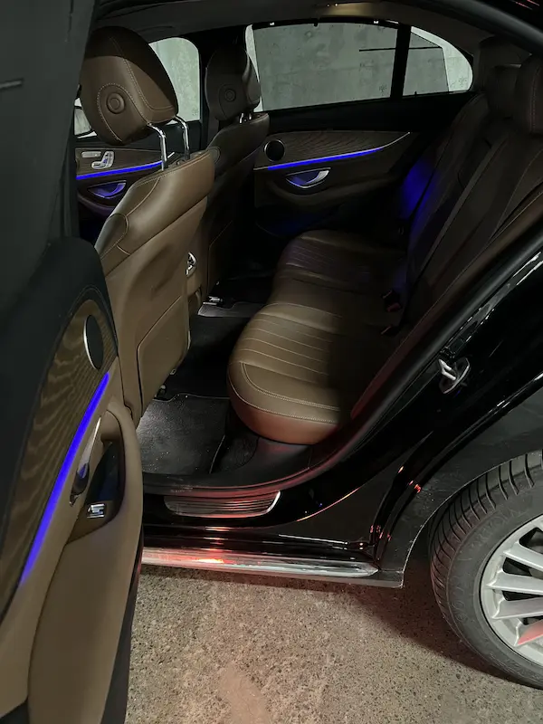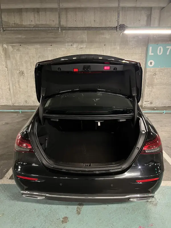 مرسدس بنز E200 دارای صندوق عقب جادار با ظرفیت مناسب برای چند چمدان متوسط است که آن را برای سفرهای کاری و خانوادگی کوچک مناسب میکند. فضای داخلی بزرگ و راحت، سفر شما را دلپذیرتر میسازد.