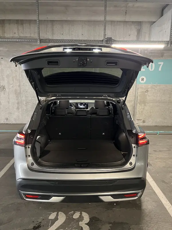 صندوق عقب نیسان قشقایی حدود ۴۲۵ لیتر فضای بار دارد که میتواند ۳ عدد چمدان متوسط را به راحتی جای دهد. این فضا برای سفرهای خانوادگی یا گردشهای دوستانه کاملاً مناسب است و صندلیهای عقب نیز قابلیت تا شدن برای افزایش فضای بار را دارند.